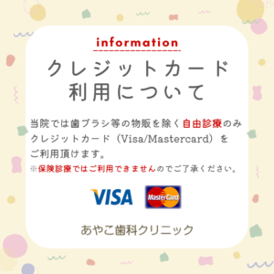 今月より自由診療のみクレジットカードをご利用頂けます。