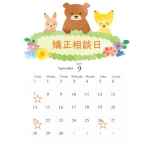 9月の矯正相談の日程を下記に記載いたします。