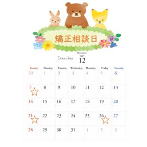 12月の矯正相談の日程を下記に記載いたします。